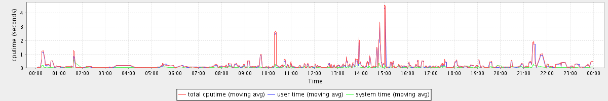 avg(total cputime) = 0.08 avg(user time) = 0.06 avg(system time) = 0.01