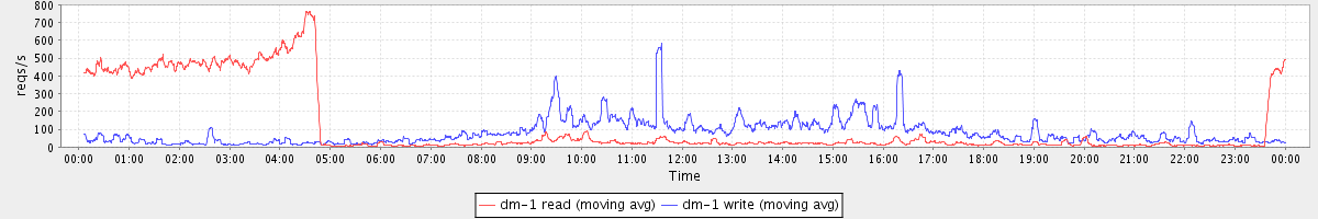 avg(dm-0 read) = 598.14 avg(dm-0 write) = 950.05