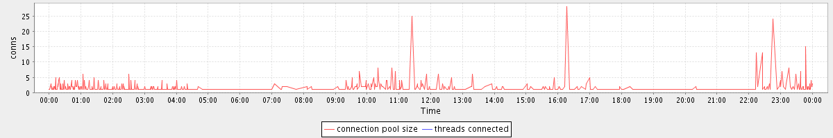 avg(connection pool size) = 0.75 avg(threads connected) = 0.00
