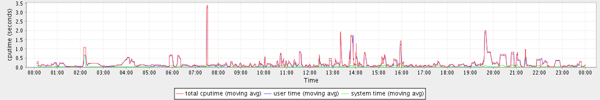 avg(total cputime) = 0.07 avg(user time) = 0.06 avg(system time) = 0.01
