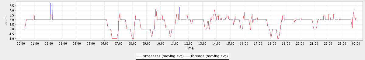 avg(processes) = 5.78 avg(threads) = 5.79