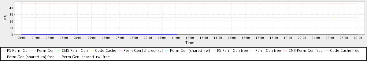avg(PS Perm Gen) = 47.59 avg(Perm Gen) = 0.00 avg(CMS Perm Gen) = 0.00 avg(Code Cache) = 25.65 avg(Perm Gen [shared-ro]) = 0.00 avg(Perm Gen [shared-rw]) = 0.00 avg(PS Perm Gen free) = 46.97 avg(Perm Gen free) = 0.00 avg(CMS Perm Gen free) = 0.00 avg(Code Cache free) = 0.16 avg(Perm Gen [shared-ro] free) = 0.00 avg(Perm Gen [shared-rw] free) = 0.00