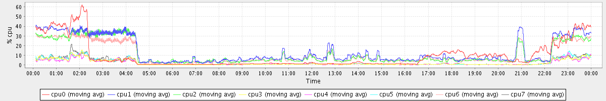 avg(cpu0) = 1.53 avg(cpu1) = 0.31 avg(cpu2) = 0.29 avg(cpu3) = 0.14 avg(cpu4) = 0.13 avg(cpu5) = 0.13 avg(cpu6) = 0.24 avg(cpu7) = 0.14