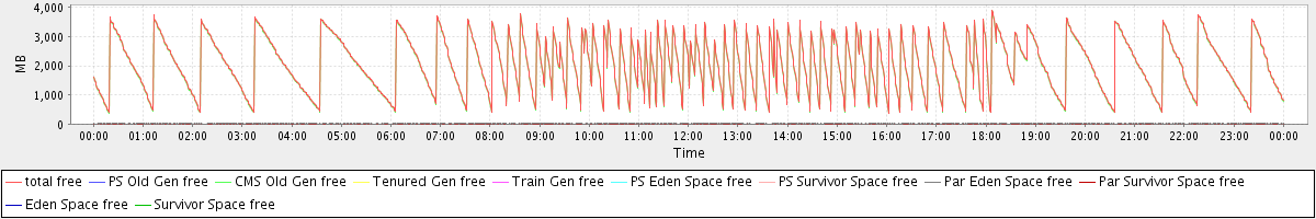 avg(total free) = 2043.09 avg(PS Old Gen free) = 0.00 avg(CMS Old Gen free) = 2022.51 avg(Tenured Gen free) = 0.00 avg(Train Gen free) = 0.00 avg(PS Eden Space free) = 0.00 avg(PS Survivor Space free) = 0.00 avg(Par Eden Space free) = 20.52 avg(Par Survivor Space free) = 0.06 avg(Eden Space free) = 0.00 avg(Survivor Space free) = 0.00