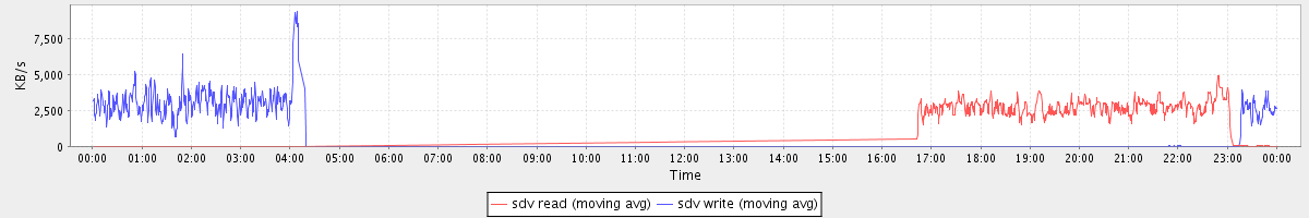 avg(sda read) = 23.40 avg(sda write) = 46.93