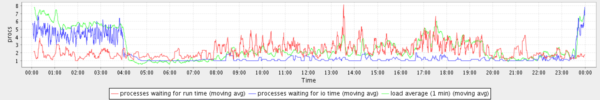 avg(processes waiting for run time) = 1.61 avg(processes waiting for io time) = 1.10 avg(load average (1 min)) = 2.74