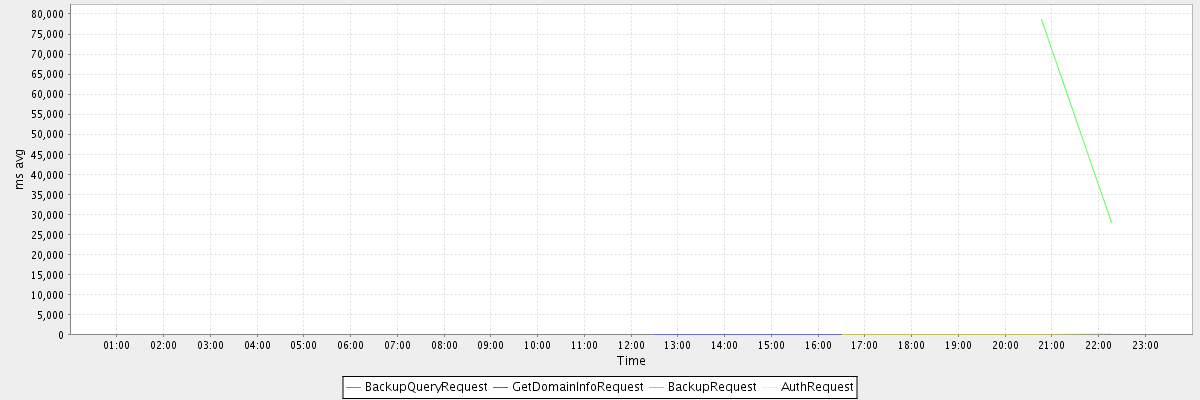 avg(BackupQueryRequest) = 675.00 avg(GetDomainInfoRequest) = 0.08 avg(BackupRequest) = 53285.50 avg(AuthRequest) = 139.33