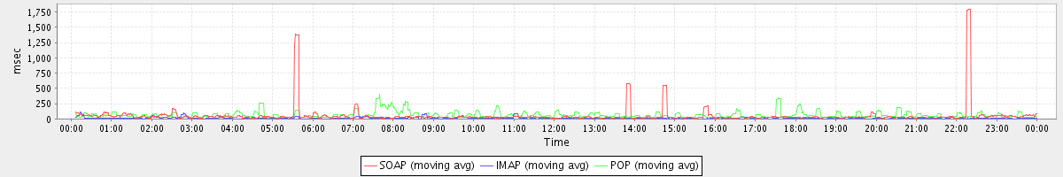 avg(IMAP) = 2.21 avg(IMAP SSL) = 508.49 avg(POP) = 0.64 avg(POP SSL) = 6.74