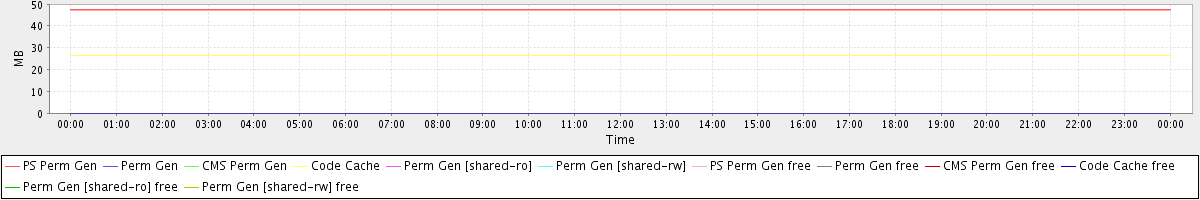 avg(PS Perm Gen) = 47.68 avg(Perm Gen) = 0.00 avg(CMS Perm Gen) = 0.00 avg(Code Cache) = 26.38 avg(Perm Gen [shared-ro]) = 0.00 avg(Perm Gen [shared-rw]) = 0.00 avg(PS Perm Gen free) = 46.88 avg(Perm Gen free) = 0.00 avg(CMS Perm Gen free) = 0.00 avg(Code Cache free) = 0.06 avg(Perm Gen [shared-ro] free) = 0.00 avg(Perm Gen [shared-rw] free) = 0.00