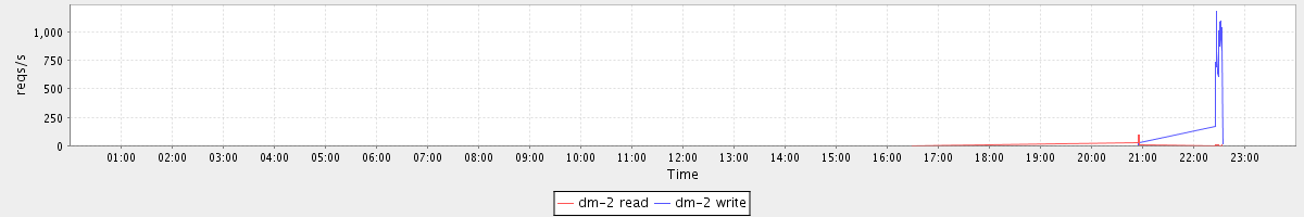 avg(dm-2 read) = 0.43 avg(dm-2 write) = 21.00