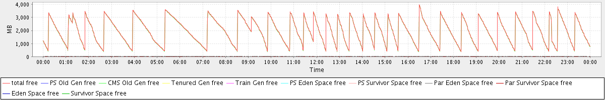 avg(total free) = 1951.67 avg(PS Old Gen free) = 0.00 avg(CMS Old Gen free) = 1931.73 avg(Tenured Gen free) = 0.00 avg(Train Gen free) = 0.00 avg(PS Eden Space free) = 0.00 avg(PS Survivor Space free) = 0.00 avg(Par Eden Space free) = 19.88 avg(Par Survivor Space free) = 0.06 avg(Eden Space free) = 0.00 avg(Survivor Space free) = 0.00