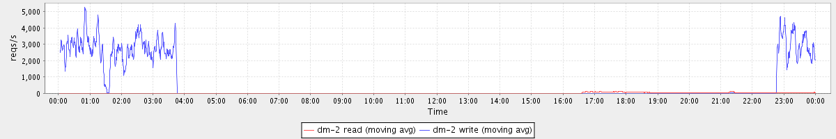 avg(dm-2 read) = 17.29 avg(dm-2 write) = 577.35
