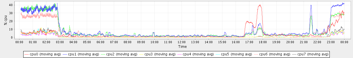 avg(cpu0) = 1.61 avg(cpu1) = 1.23 avg(cpu2) = 1.01 avg(cpu3) = 0.47 avg(cpu4) = 0.37 avg(cpu5) = 0.36 avg(cpu6) = 0.77 avg(cpu7) = 0.34