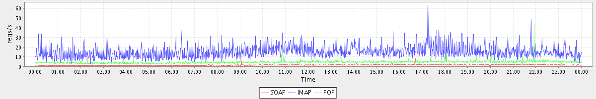 Host zm05.stanford.edu: Mailboxd: Request Rate by Client Protocol