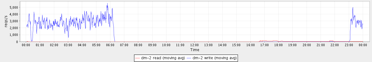 avg(dm-2 read) = 17.09 avg(dm-2 write) = 844.89