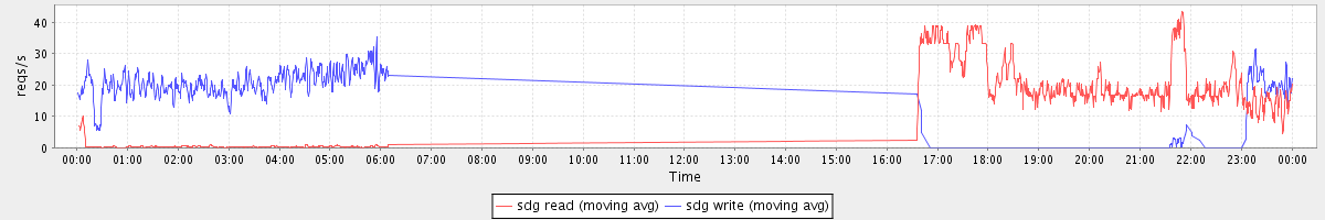 avg(sda1 read) = 24.49 avg(sda1 write) = 45.18