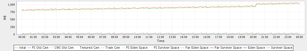 avg(total) = 904.87 avg(PS Old Gen) = 0.00 avg(CMS Old Gen) = 883.96 avg(Tenured Gen) = 0.00 avg(Train Gen) = 0.00 avg(PS Eden Space) = 0.00 avg(PS Survivor Space) = 0.00 avg(Par Eden Space) = 20.91 avg(Par Survivor Space) = 0.00 avg(Eden Space) = 0.00 avg(Survivor Space) = 0.00
