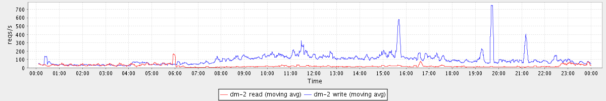 avg(dm-2 read) = 390.93 avg(dm-2 write) = 674.84