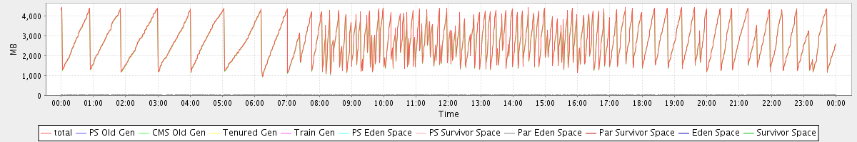 avg(total) = 2765.38 avg(PS Old Gen) = 0.00 avg(CMS Old Gen) = 2745.14 avg(Tenured Gen) = 0.00 avg(Train Gen) = 0.00 avg(PS Eden Space) = 0.00 avg(PS Survivor Space) = 0.00 avg(Par Eden Space) = 20.24 avg(Par Survivor Space) = 0.00 avg(Eden Space) = 0.00 avg(Survivor Space) = 0.00