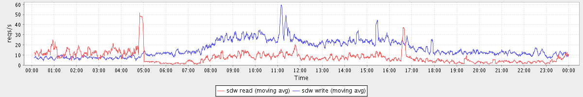 avg(sda1 read) = 28.84 avg(sda1 write) = 41.65