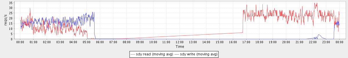 avg(sda read) = 28.79 avg(sda write) = 54.52