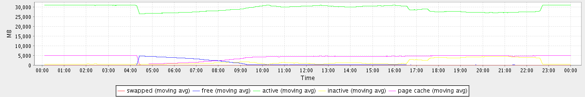 avg(swapped) = 0.22 avg(free) = 711.74 avg(active) = 29175.73 avg(inactive) = 1568.30 avg(page cache) = 4107.57