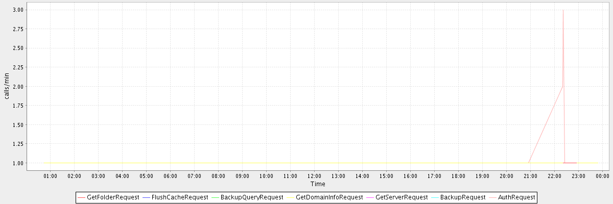 max(GetFolderRequest) = 1.00 max(FlushCacheRequest) = 1.00 max(BackupQueryRequest) = 1.00 max(GetDomainInfoRequest) = 1.00 max(GetServerRequest) = 1.00 max(BackupRequest) = 1.00 max(AuthRequest) = 3.00
