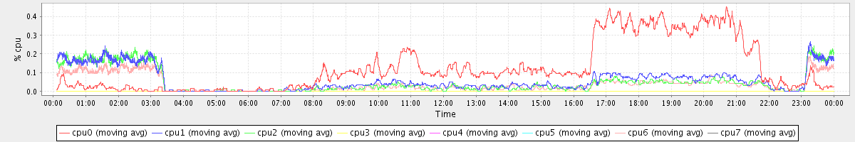 avg(cpu0) = 1.14 avg(cpu1) = 0.21 avg(cpu2) = 0.22 avg(cpu3) = 0.09 avg(cpu4) = 0.07 avg(cpu5) = 0.08 avg(cpu6) = 0.15 avg(cpu7) = 0.08