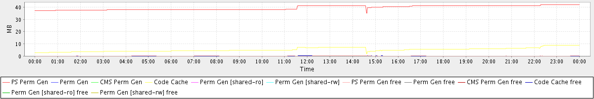 avg(PS Perm Gen) = 39.58 avg(Perm Gen) = 0.00 avg(CMS Perm Gen) = 0.00 avg(Code Cache) = 5.33 avg(Perm Gen [shared-ro]) = 0.00 avg(Perm Gen [shared-rw]) = 0.00 avg(PS Perm Gen free) = 0.10 avg(Perm Gen free) = 0.00 avg(CMS Perm Gen free) = 0.00 avg(Code Cache free) = 0.08 avg(Perm Gen [shared-ro] free) = 0.00 avg(Perm Gen [shared-rw] free) = 0.00