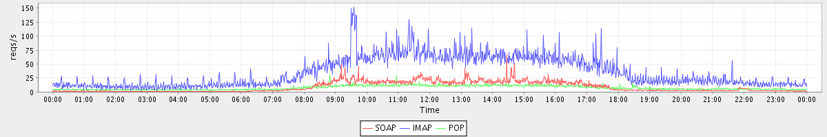 Host zm05.stanford.edu: Mailboxd: Request Rate by Client Protocol