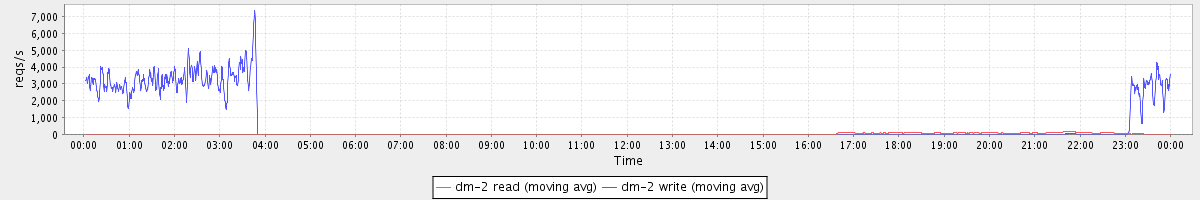 avg(dm-2 read) = 24.11 avg(dm-2 write) = 631.16