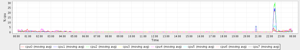 avg(cpu0) = 0.01 avg(cpu1) = 0.01 avg(cpu2) = 0.01 avg(cpu3) = 0.00 avg(cpu4) = 0.00 avg(cpu5) = 0.00 avg(cpu6) = 0.00 avg(cpu7) = 0.00