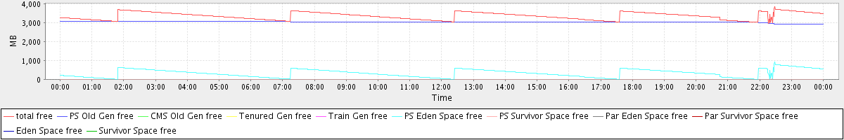 avg(total free) = 3349.55 avg(PS Old Gen free) = 3027.13 avg(CMS Old Gen free) = 0.00 avg(Tenured Gen free) = 0.00 avg(Train Gen free) = 0.00 avg(PS Eden Space free) = 321.53 avg(PS Survivor Space free) = 0.89 avg(Par Eden Space free) = 0.00 avg(Par Survivor Space free) = 0.00 avg(Eden Space free) = 0.00 avg(Survivor Space free) = 0.00