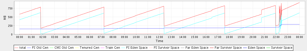 avg(total) = 538.41 avg(PS Old Gen) = 181.56 avg(CMS Old Gen) = 0.00 avg(Tenured Gen) = 0.00 avg(Train Gen) = 0.00 avg(PS Eden Space) = 333.40 avg(PS Survivor Space) = 23.46 avg(Par Eden Space) = 0.00 avg(Par Survivor Space) = 0.00 avg(Eden Space) = 0.00 avg(Survivor Space) = 0.00