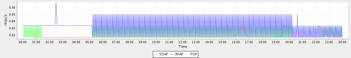 Host zm01-int.stanford.edu: Mailboxd: Request Rate by Client Protocol