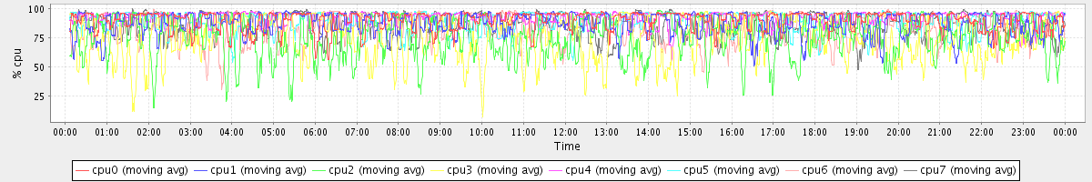 avg(cpu0) = 89.51 avg(cpu1) = 87.01 avg(cpu2) = 73.85 avg(cpu3) = 73.38 avg(cpu4) = 91.80 avg(cpu5) = 88.89 avg(cpu6) = 83.57 avg(cpu7) = 85.99