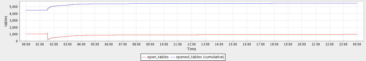 avg(open_tables) = 880.15 avg(opened_tables (cumulative)) = 5380.88