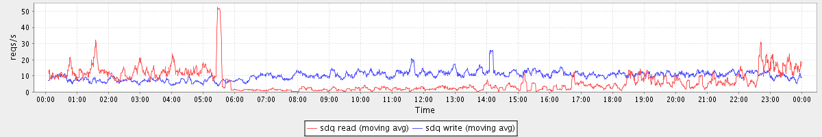 avg(sdq read) = 95.39 avg(sdq write) = 147.62