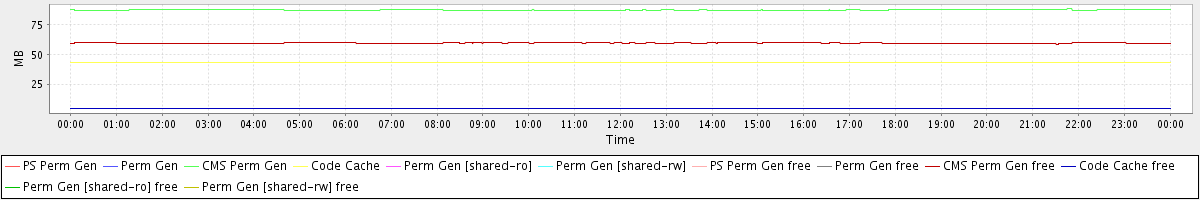 avg(PS Perm Gen) = 0.00 avg(Perm Gen) = 0.00 avg(CMS Perm Gen) = 87.36 avg(Code Cache) = 43.02 avg(Perm Gen [shared-ro]) = 0.00 avg(Perm Gen [shared-rw]) = 0.00 avg(PS Perm Gen free) = 0.00 avg(Perm Gen free) = 0.00 avg(CMS Perm Gen free) = 59.42 avg(Code Cache free) = 4.61 avg(Perm Gen [shared-ro] free) = 0.00 avg(Perm Gen [shared-rw] free) = 0.00