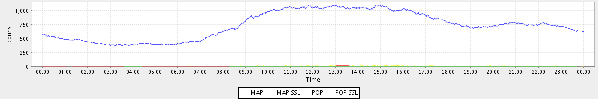 Host zm09.stanford.edu: Mailboxd: Active Connections by Client Protocol