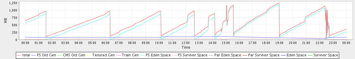 avg(total) = 578.41 avg(PS Old Gen) = 57.28 avg(CMS Old Gen) = 0.00 avg(Tenured Gen) = 0.00 avg(Train Gen) = 0.00 avg(PS Eden Space) = 486.19 avg(PS Survivor Space) = 34.94 avg(Par Eden Space) = 0.00 avg(Par Survivor Space) = 0.00 avg(Eden Space) = 0.00 avg(Survivor Space) = 0.00
