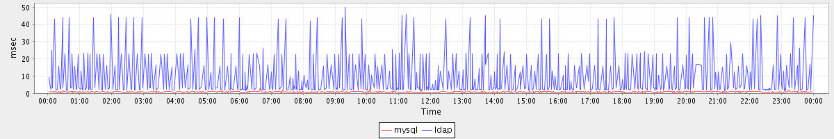avg(mysql) = 0.30 avg(ldap) = 4.37