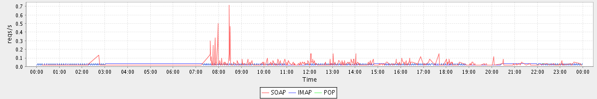 Host zm02-int.stanford.edu: Mailboxd: Request Rate by Client Protocol
