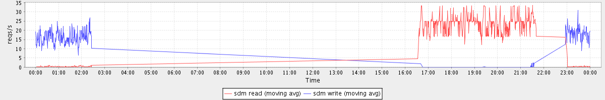 avg(sdr read) = 17.13 avg(sdr write) = 1.27