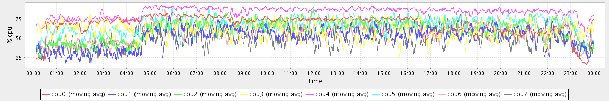 avg(cpu0) = 8.09 avg(cpu1) = 9.86 avg(cpu2) = 10.02 avg(cpu3) = 0.77 avg(cpu4) = 2.87 avg(cpu5) = 2.31 avg(cpu6) = 7.77 avg(cpu7) = 0.61