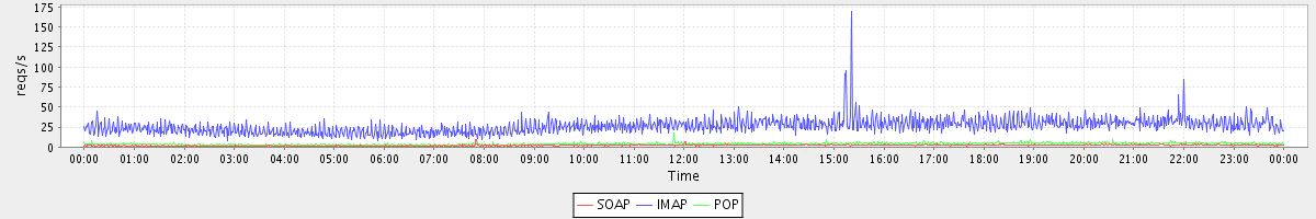 Host zm01.stanford.edu: Mailboxd: Request Rate by Client Protocol