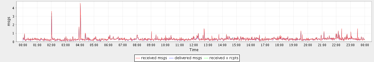 avg(received msgs) = 0.31 avg(delivered msgs) = 0.30 avg(received x rcpts) = 0.31