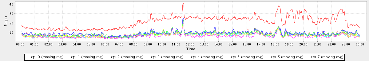 avg(cpu0) = 2.02 avg(cpu1) = 0.47 avg(cpu2) = 0.41 avg(cpu3) = 0.30 avg(cpu4) = 0.25 avg(cpu5) = 0.28 avg(cpu6) = 0.39 avg(cpu7) = 0.29