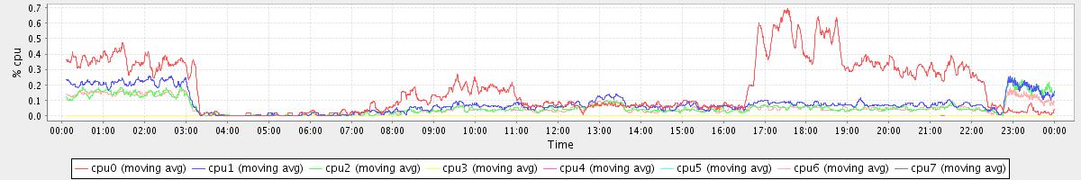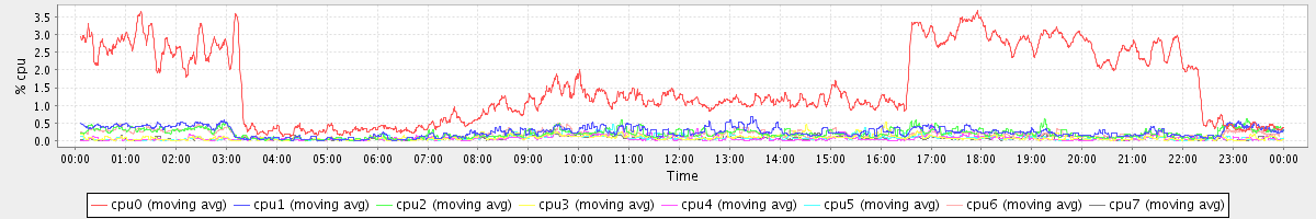 avg(cpu0) = 1.54 avg(cpu1) = 0.25 avg(cpu2) = 0.20 avg(cpu3) = 0.08 avg(cpu4) = 0.06 avg(cpu5) = 0.07 avg(cpu6) = 0.17 avg(cpu7) = 0.06