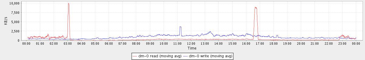 avg(dm-1 read) = 2166.48 avg(dm-1 write) = 334.98